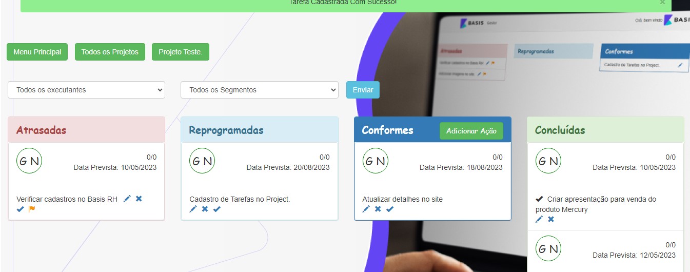 Agora você pode criar projetos e administrá-los de acordo com a necessidade dos diferentes setores da sua empresa. É simples, prático e inovador. Faça uma demonstração.